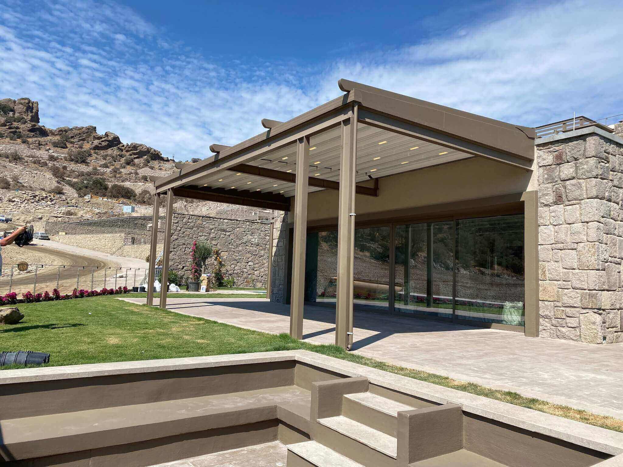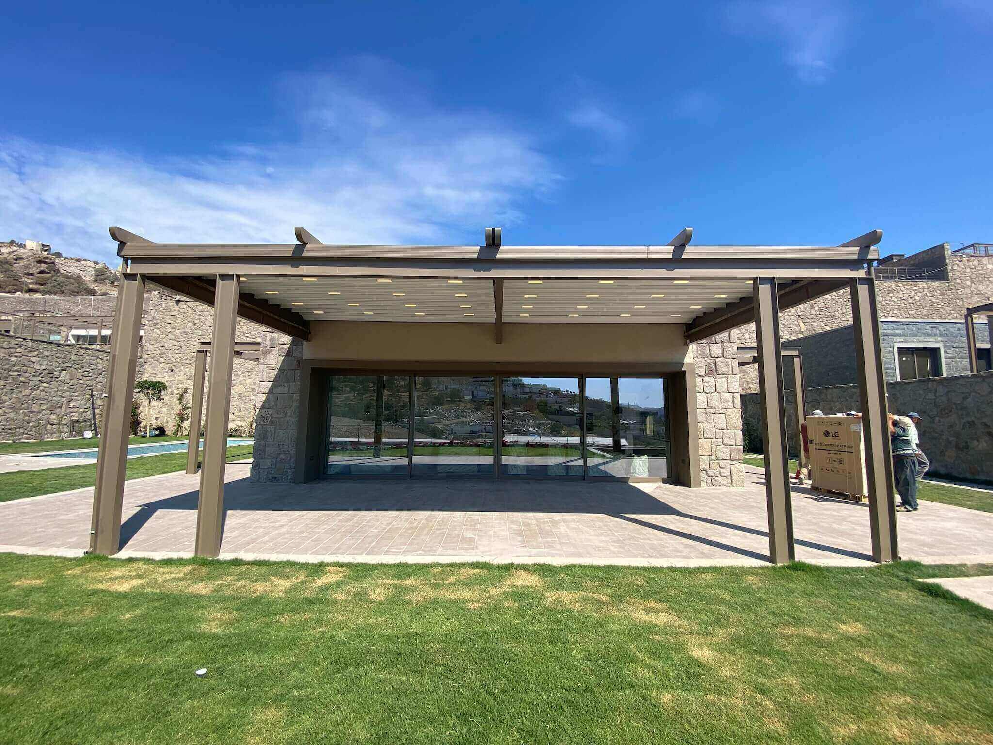 Dayanıklı alüminyum ve ahşap görünümlü kompozit malzemelerle pergola sistemleri tasarlandı.