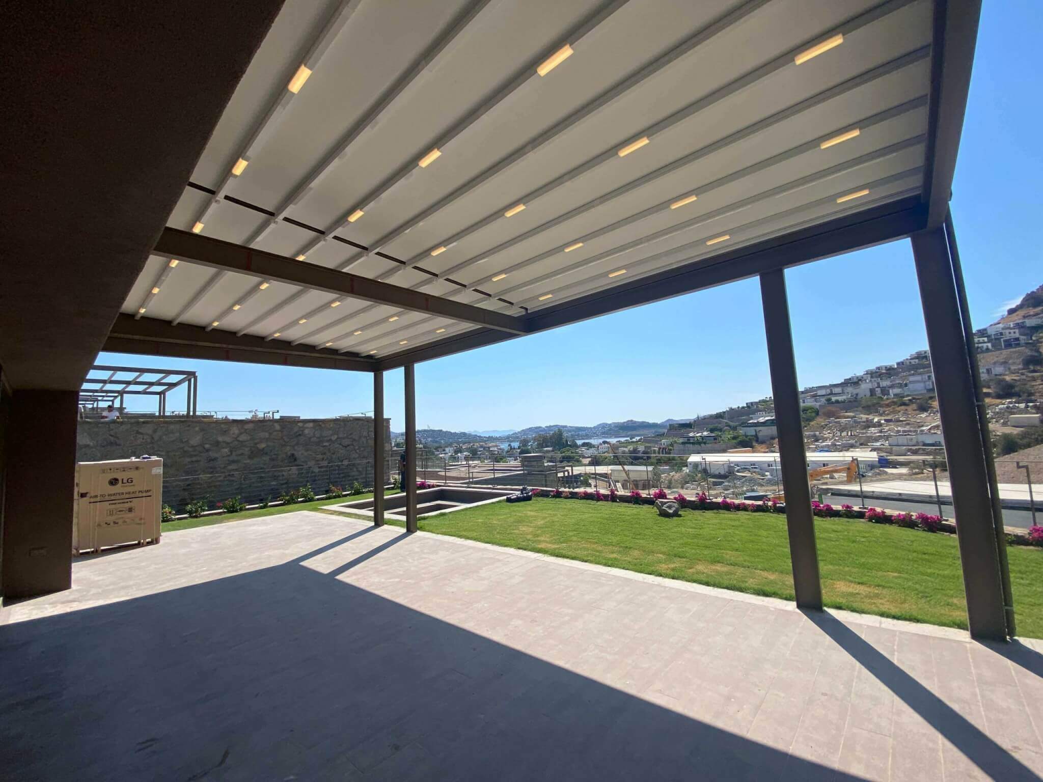 Doğal taş mimarisiyle Bodrum’un eşsiz atmosferini yansıtan Seba Taşevleri’nde gerçekleştirdiğimiz bodrum özel konut pergola projesi, modern yaşam konforunu estetik detaylarla buluşturuyor. Kullanıcının ihtiyaçlarına özel olarak tasarlanan bu sistem, açık yaşam alanlarını yılın dört mevsimi kullanılabilir hale getirirken, yapının mimari karakteriyle tam uyum içinde çalışılmıştır.