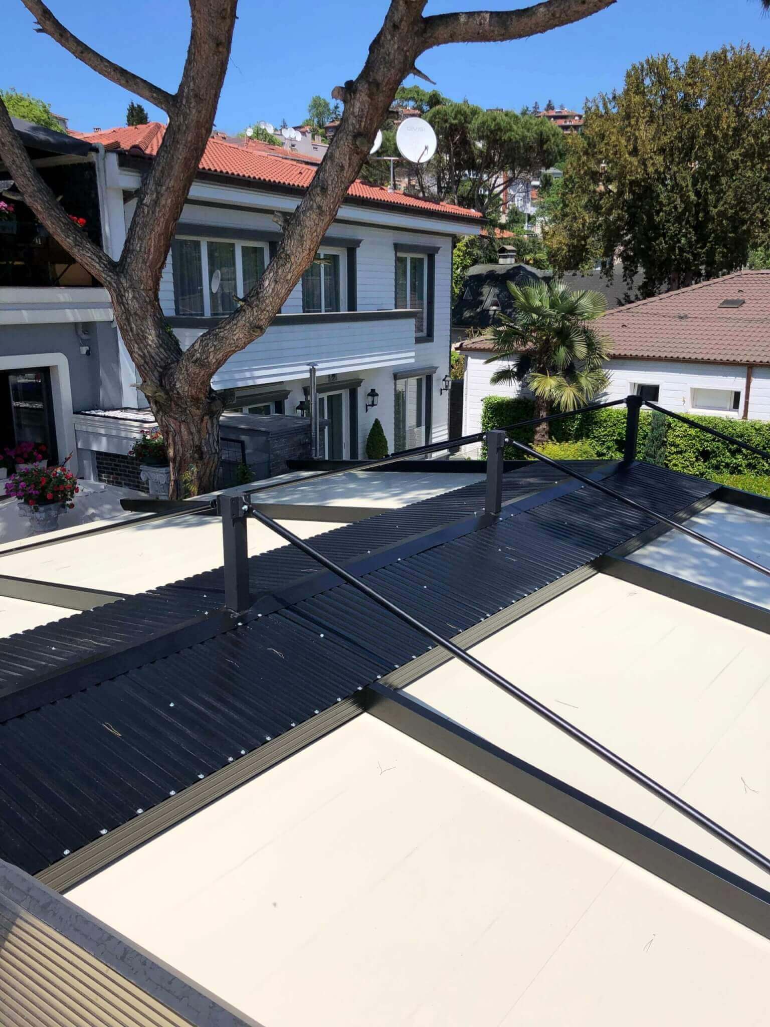 Açık alan kullanımını dört mevsim sürdürülebilir hale getiren otomatik pergola sistemi kuruldu.