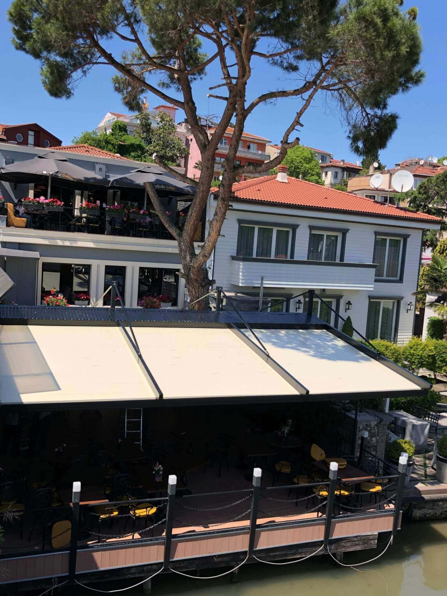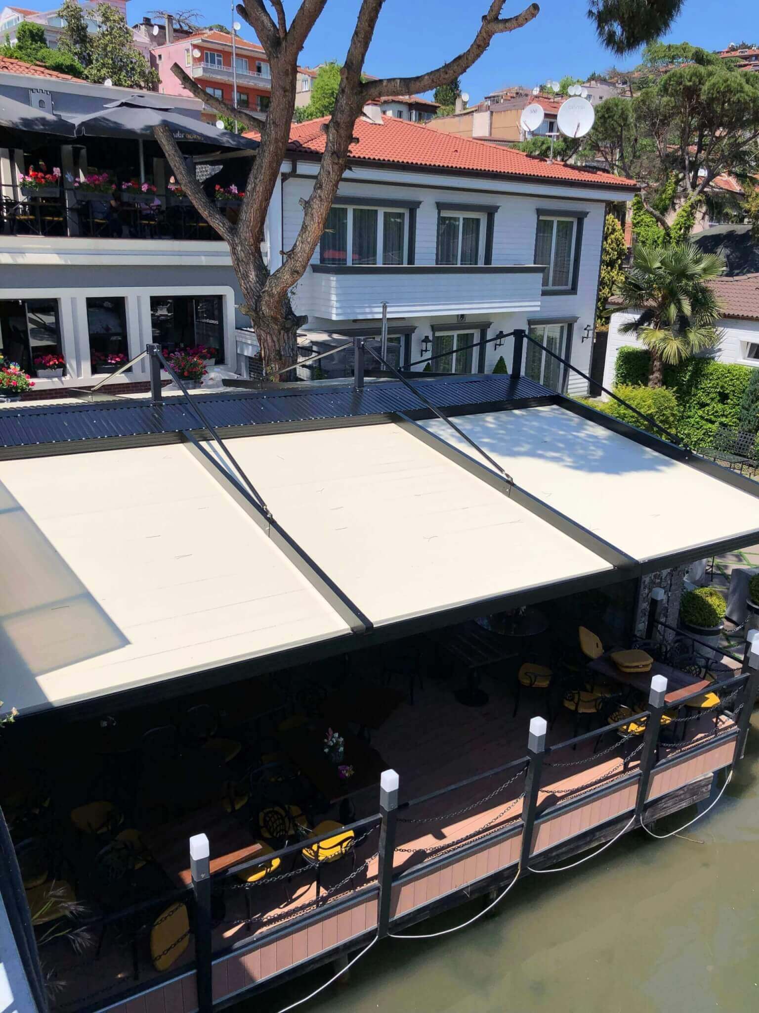Oldfort Cafe Anadolu Hisarı Pergola Projesi, tarihi dokusu ve boğaz manzarasıyla öne çıkan bu özel konumda, misafir deneyimini yıl boyunca üst seviyeye taşımayı amaçlayan bir dış mekân çözümüdür. Mekânın mimari karakterine zarar vermeden, konfor ve estetik dengesini gözeten bir tasarım anlayışı benimsenmiştir.