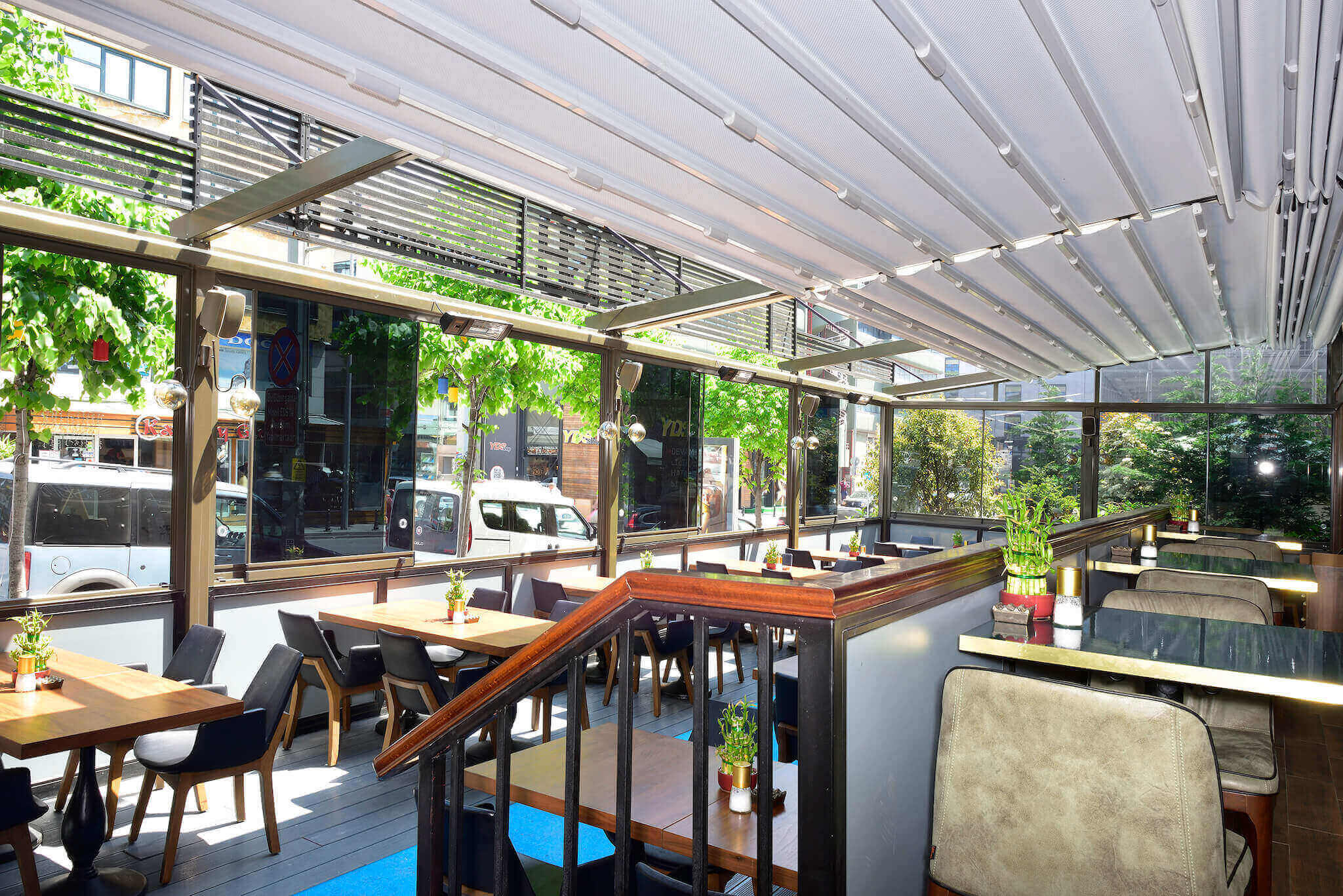 Sense Restaurant & Bar Pergola Projesi, modern gastronomi anlayışını açık hava konforuyla buluşturarak misafir deneyimini yıl boyunca üst seviyeye taşımayı hedefleyen özel bir uygulamadır. Mekânın zarif çizgilerine uyum sağlayan bu sistem, estetik tasarımı ve teknolojik özellikleriyle dikkat çeker.