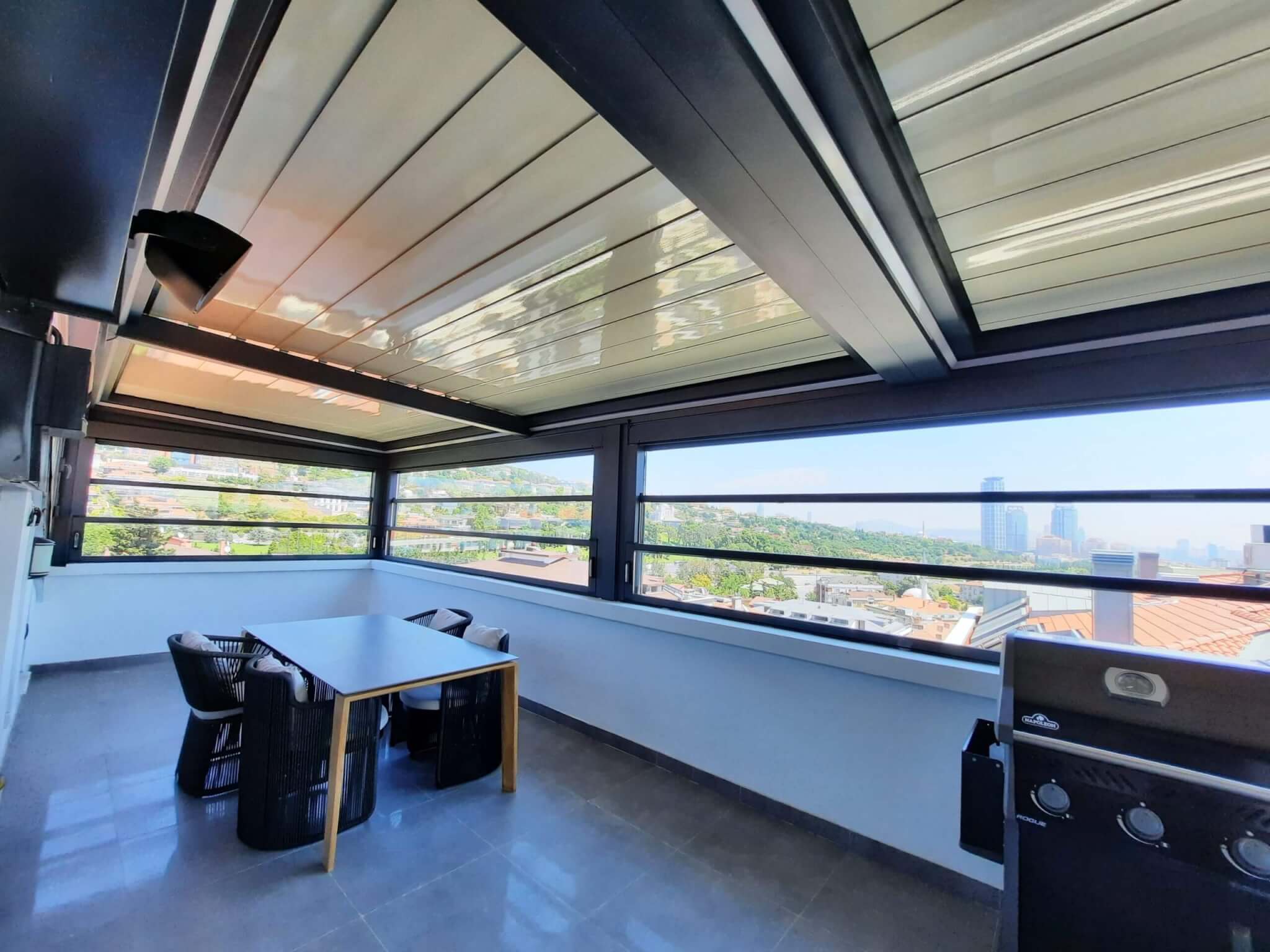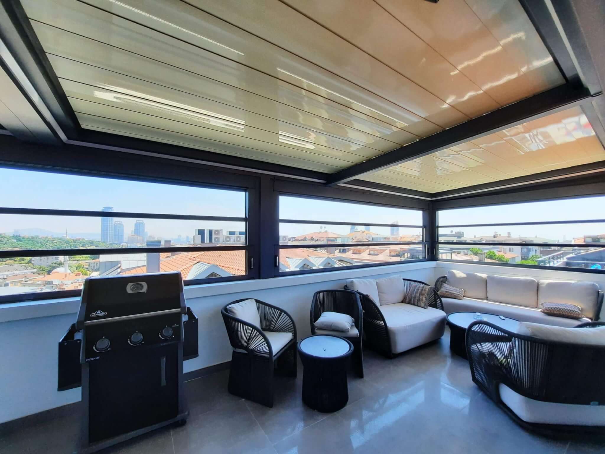Alüminyum profillerle desteklenen yapısı, yüksek yalıtım gücü ve rüzgar dayanımı sayesinde dört mevsim kullanılabilir. Özellikle kafe, restoran, balkon ve teras gibi dış mekanlarda hem kullanıcı konforunu artırır hem de mekana modern ve şık bir görünüm kazandırır. Temperli cam seçenekleri ile güvenlik de ön planda tutulur.